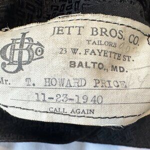 Rare, one of a kind tuxedo vest!  From 1940 with label from original owner (see photo) Beautiful waffle black silk texture.  Detachable stud buttons on front.  The front is in beautiful condition.  There is a tear in the lining on the back.  (see photos).  There is no size attached to the vest but I would call it a medium based on the measurements, see photos.