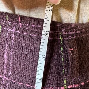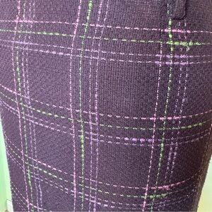 Classic pencil skirt with a blend of purple, pink, and green colors, perfect for adding a pop of color to your wardrobe. Its tailored fit accentuates your silhouette, making it ideal for both professional and casual settings.