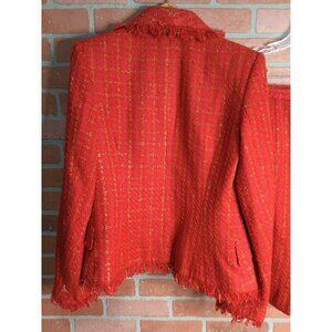 Vintage Tweed Skirt Blazer Jacket Set Suit Red Gold Metallic Fringe Detail
