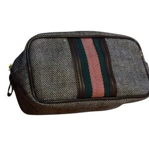 Vintage Tweed Stripe Toiletries Travel Bag Dopp Kit Carry On Gym Compact Luggage
