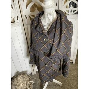 Vintage Tweed Wool Large Button Coat With Matching Scarf Dabney Lane Size Medium