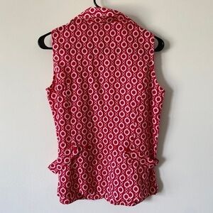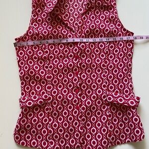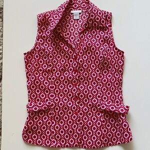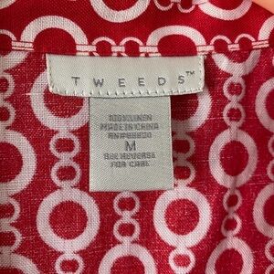Vintage Tweeds Bold Red 100% Linen Retro Abstract Sleeveless Button Up Medium