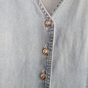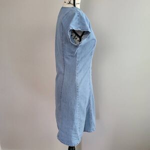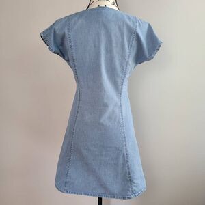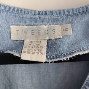 Vintage Tweeds size chambray denim button up shirt dress mini cap sleeve v neck. In excellent pre owned condition with no signs of wear or damage.