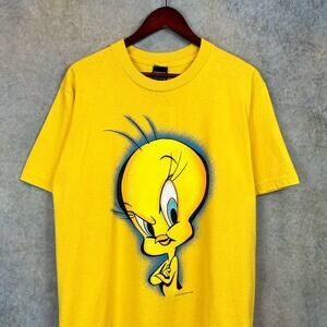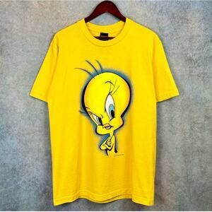 Vintage Tweety Bird Big Print T Shirt 90s Mens Sz L Yellow Looney Tunes Cartoon