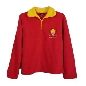 Vintage Tweety Bird Fleece Pullover Space Jam Warner Bros 1996 Quarter Zip