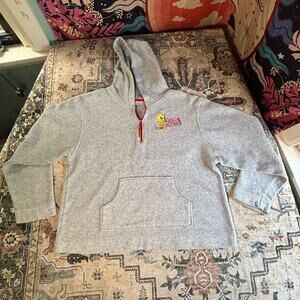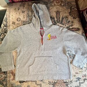 Vintage Tweety Bird Hoodie Sweatshirt Gray Fleece Pullover 90s Top Looney Tunes