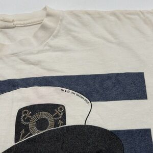 This Vintage Tweety Bird Sailor T Shirt from 1994 is a rare find for collectors of Men's Vintage Clothing. Made of cotton with a white color and featuring short sleeves, this graphic tee showcases the iconic Looney Tunes brand and a sportswear/beach look. The size XL shirt is unisex and single-stitched, adding to its authenticity as an original piece manufactured in the United States during the 1990s. Perfect for fans of nostalgic cartoon characters and vintage fashion alike.