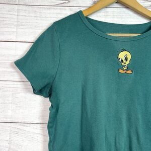 Vintage Tweety Bird Y2K Green Embroidered Short Sleeve Shirt Size Small