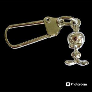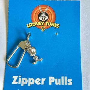 Vintage Tweety Bird Zipper Pull Purse Charm Silver Tone Warner Bros Looney Tunes