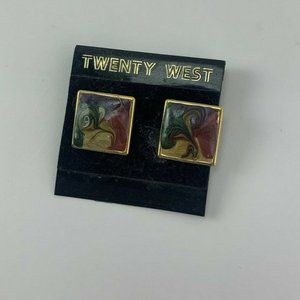 Vintage Twenty West Enamel Swirl Pierced Earrings
