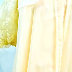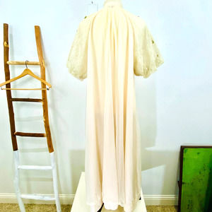 Vintage Twin Roses Chiffon Overlay Robe W/Lace Sleeves & Tiny Rosettes OS