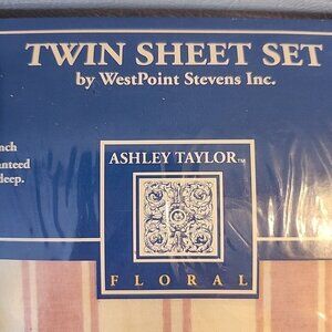 Vintage Twin Sheet Set by WestPoint Stevens Pink Floral Stripes Sealed Package
