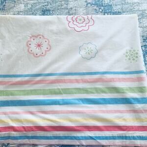 Vintage Twin Size Duvet Cover Mid Century MCM Bedding Floral Print Pink White Blue Yellow Green