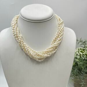 Genuine freshwater pearl necklace. Can be worn with the strands twisted or hanging loose.