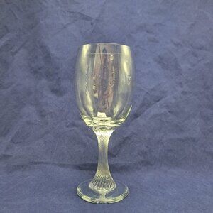 This clear glass water goblet features an elegant twisted stem design, offering a classic and sophisticated touch to any table setting.