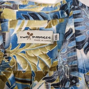 Vintage Two Paddles Men's Hawaiian Aloha Shirt Leaves Foliage Pattern Size XXL