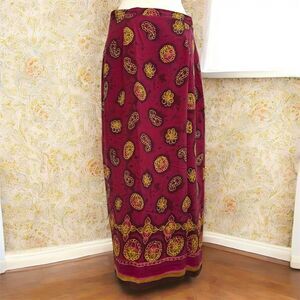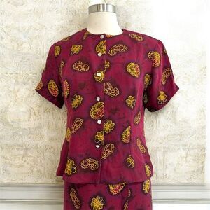 Vintage Two Piece Red Paisley Set Wrap Skirt Blouse Silk Button 10 M