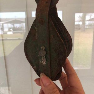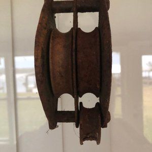 Vintage Two Sheaves Block and Tackle Industrial Farm Steampunk
