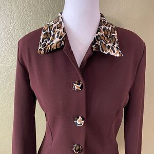 Vintage Two Stars Womens Small Cheetah Print Collared Cuffed 4 Button Blazer USA