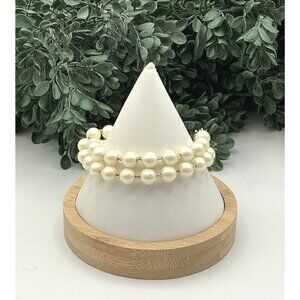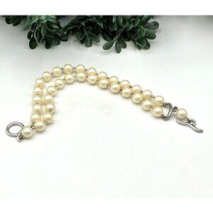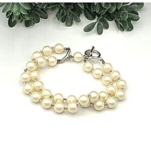 Vintage Two Strand Cream Pearl Bracelet With Silver Toggle Clasp