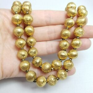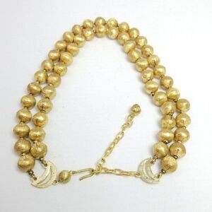 Vintage Two Strand Gold Tone Beaded Necklace with Adjustable Clasp, Estate