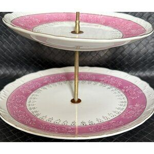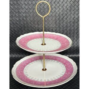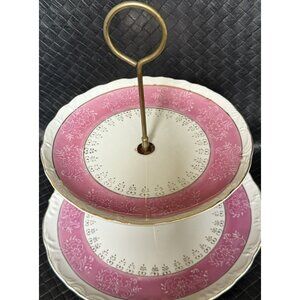 Vintage Two Tier Cake Server Pretty Pink White And Gold Scalloped Layers Dainty