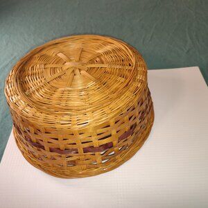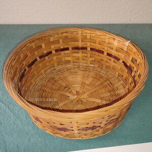 Vintage Two Tone Basket Round Circular Woven Old Quality Kitchen Office Accents