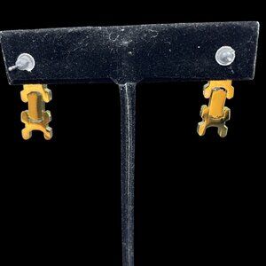 Earrings: Post-back dangle earrings, matching two-tone link design - 1"
