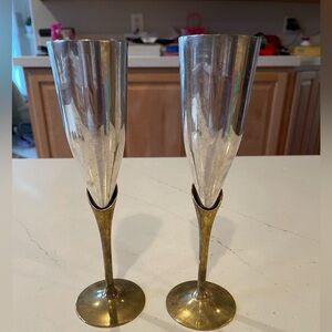 Vintage Two Tone Gold and Silver Brass Champagne Flutes By Maurice Duchin Inc