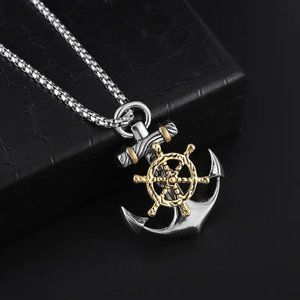 Vintage Pirate Rudder Anchor Pendant Necklace