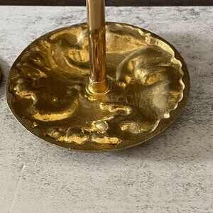 Vintage Two-Piece Embossed Baroque Medallion Solid Brass Curtain Tie Backs 4"