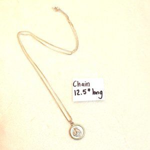 The chain measures 12.5" The Medallion charm approx 3/4"