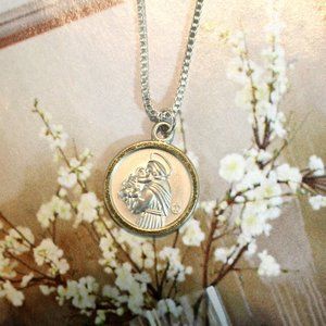 Vintage from the 1980s Era. This beautiful round Unisex vintage 2-tone Vintage Saint Anthony Medallion Pendant Necklace makes an excellent gift! Saint Anthony holding Baby Jesus in his arms.
