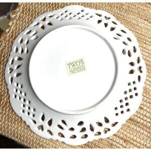 Vintage Twos Company 10" Round Lace Heart Decorative Dinner Plate granny core