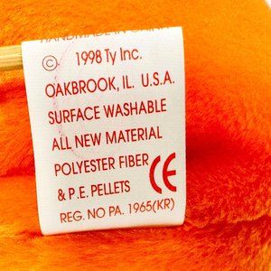 Vintage Ty "Pumkin" Plush Beanie toy. Ty Orignal Beanie Baby. Halloween Beanie Baby. Legs and arms are floppy. Size is approx. 4.5" x 5.5". New condiion with swing and tush tags. Heart protector is intact.