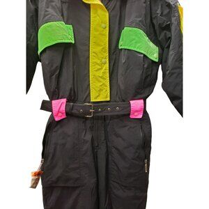 Vintage Tyrolia By Head Ladies Celtech Ski Suit Size 8 Black Pink Green Yellow N