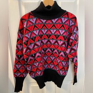 Vintage Tyrolia Skiwear Sweater Turtleneck Geometric Retro Wool Blend Medium
