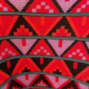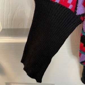 Black, green, red, orange and purple geometric aztec pattern knit turtleneck