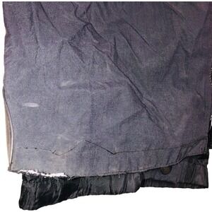 Wear on the bottom of the left leg and partially undone stitching at the side hook and loop closure, please see the pictures