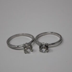 A set of silver tone Uncas Solitaire rings