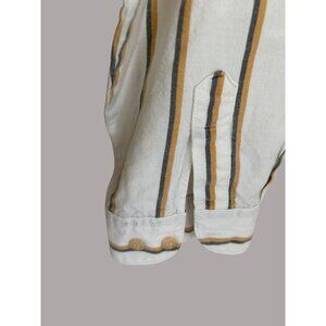 This shirt tells a tale of timeless style with its vintage vibes. Featuring a regal embroidered crest, it whispers sophistication. Its neutral stripes make it versatile, while the lightweight fabric ensures comfort. A classic addition to wardrobes that appreciate understated elegance and charming nostalgia.