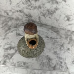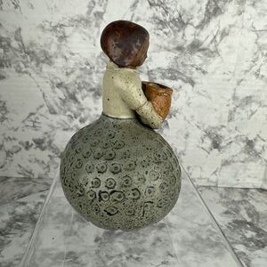 Vintage UCTCI Japanese Pottery Figurine Girl Carrying Pot Green Bell Dress