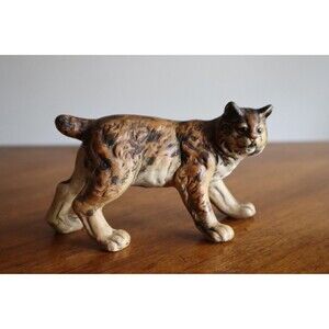 Vintage UCTCI Porcelain Bob Cat Figurine Japan Wild Animal Feline 3"H Foil Label