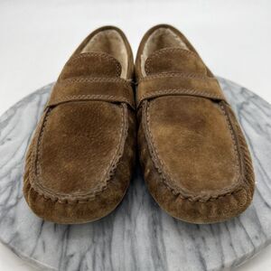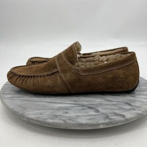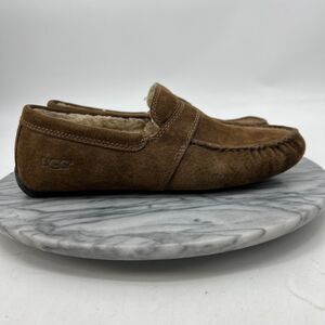 VINTAGE UGG LOAFER MENS 8 BROWN SUEDE SLIP ON SHEARLING LINED SLIPPER SHOES