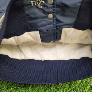 VINTAGE UMASS LOWELL BAND JACKET, 80S SATIN VARSITY JACKET USA, MVP PRODUCTS LETTERMAN COAT, NAVY WHITE COLORBLOCK JACKET, RETRO RAGLAN BOMBER STYLE, VINTAGE JACKET, VARSITY JACKET, BAND JACKET, COLLEGE JACKET, SATIN BOMBER