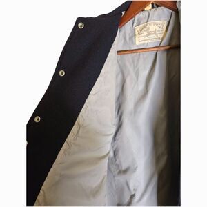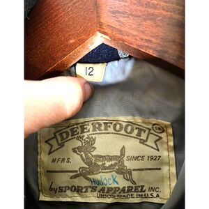 This vintage Deerfoot Sports Apparel jacket is a true gem for any sports enthusiast. Made in the USA, it features a navy and Carolina blue color scheme. The jacket is lined with linen and insulated with wool, making it perfect for the fall and winter seasons, especially during football games.