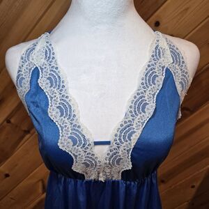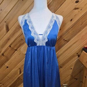 Vintage UNDERCOVER WEAR Size P (S/M) Blue Maxi Night Gown Slip USA MADE