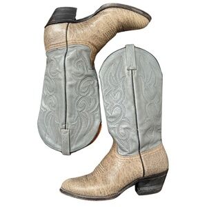 Vintage UNIQUE Green Blue Leather Western Cowboy Boot Size 9