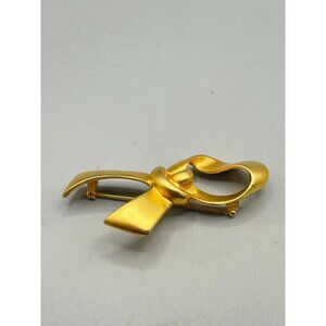 Vintage UNSIGNED Anne Klein Pin Brooch Matte Gold Tone Golden Bow Ribbon