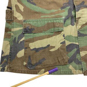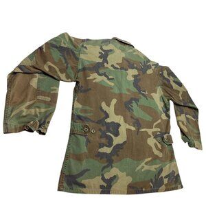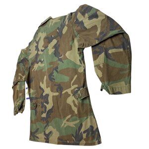 Step into the past with this authentic vintage U.S. Army woodland camo BDU jacket featuring iconic military detailing and patches. A true collector's item, this durable piece showcases the craftsmanship of its era, blending functionality with historical significance. Ideal for enthusiasts or those seeking rugged, timeless fashion.
